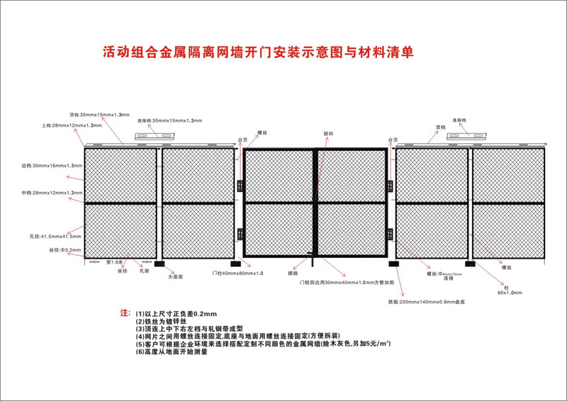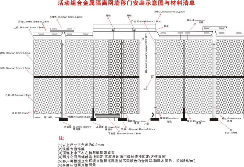 金屬網(wǎng)墻具有設(shè)計(jì)新穎、美觀、大方、結(jié)構(gòu)緊湊、牢固、組合靈活、安裝拆卸方便等優(yōu)點(diǎn)??呻S意進(jìn)行組合的活動(dòng)組合型金屬網(wǎng)墻,特別適廠房、車間、倉庫、貨物規(guī)劃與分類存放隔離作用。